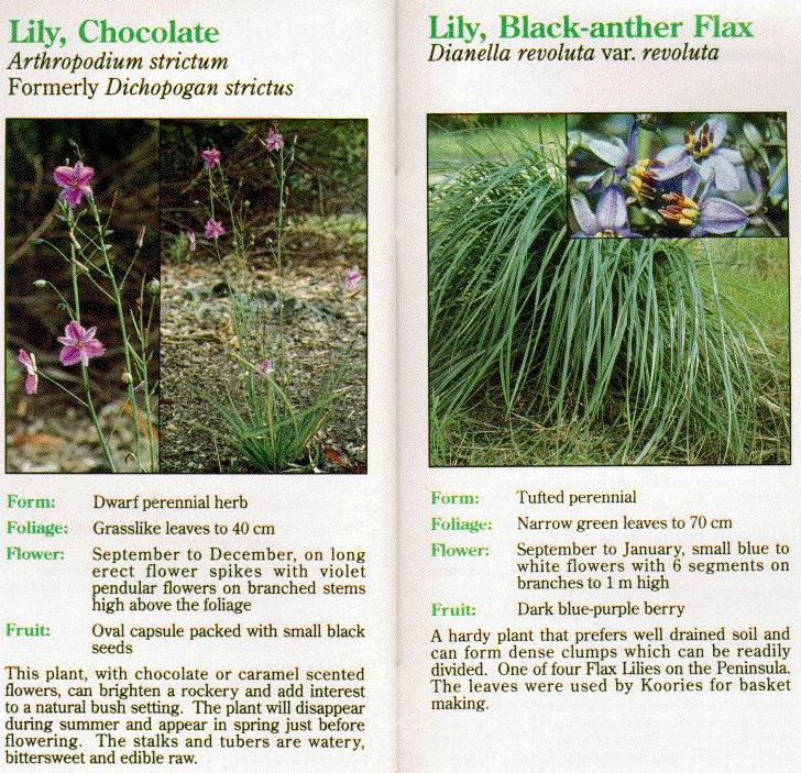 The heath proper was extremely rich in species, notably in the orchid, wattle, pea and epacrid groups, its facies at flowering time (July to October) recalling the colourful display of a West Australian sand-plain. Unfortunately this very attractive belt of vegetation, so interesting to the botanist, has been all but exterminated through suburban housing, draining of swamps, and agricultural developments. The few inadequate and pathetic selvages that remain are being inexorably ruined by aggressive weeds that thrive on disturbed ground (e.g., alien species of Briza, Ehrharta, Watsonia, Phytolacca, Oxalis, Salpichroa, Coprosma, Senecio and Chrysanthemoides).